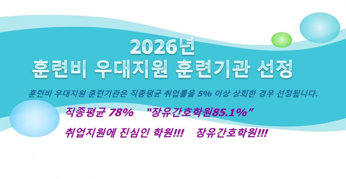 고용노동부 지정 직업능력개발 훈련기관 장유간호학원입니다.